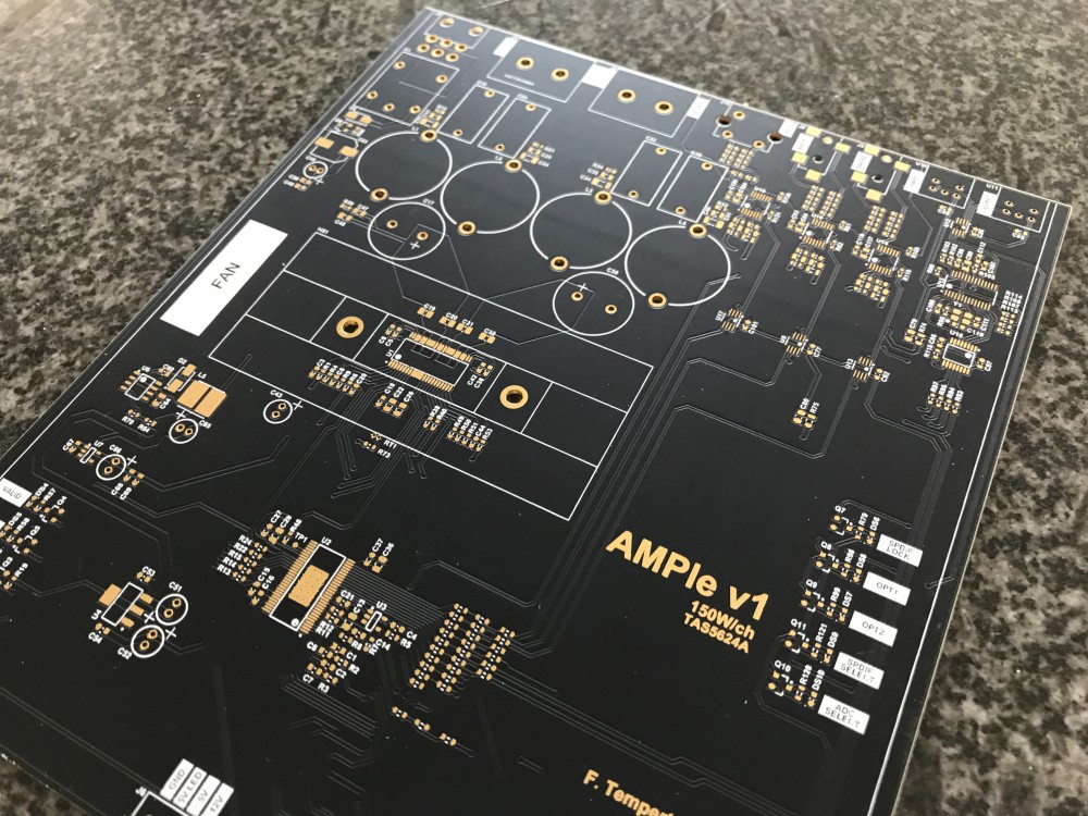 The PCB was hand assembled and fabricated in 2oz copper with matt black soldermask and ENIG – my favourite combination!