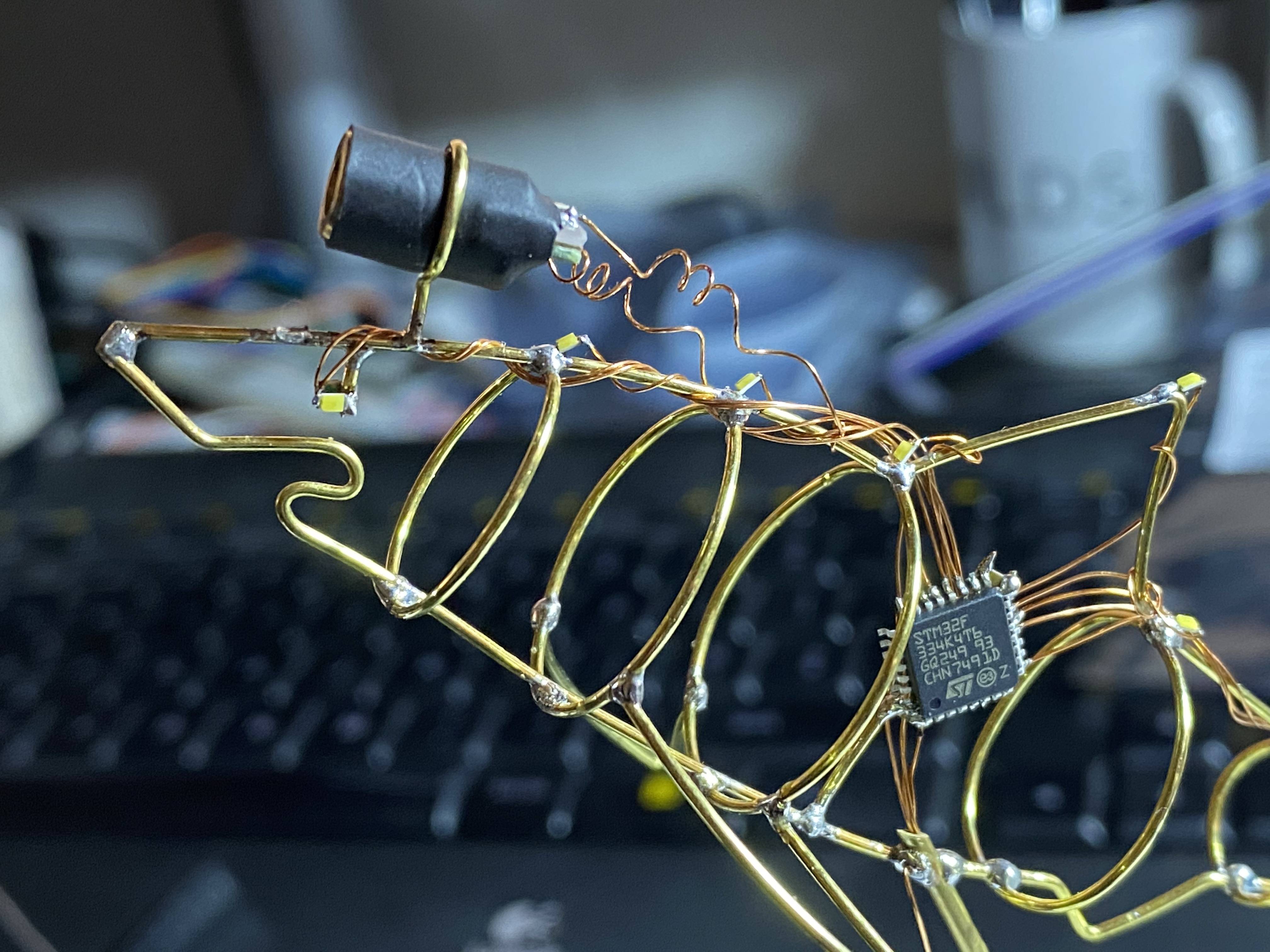 Brass wires and tubes can be made into a myriad of different things – this time a shark, complete with LEDs and laser no less.